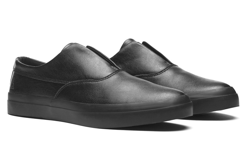 スケートボードからフォーマルなシーンにまで幅広く対応するディラン・リーダーのスリッポン。アッパーには高級感溢れるプレミアムレザーを贅沢に使用。DYLAN SLIP ON Black Grain ¥15,120