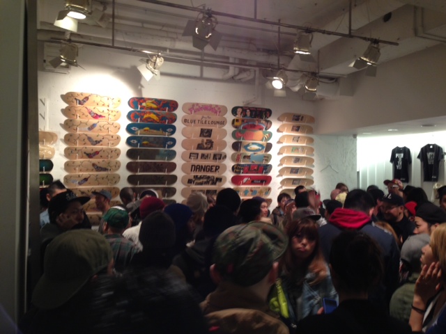 先週4月12日金曜の夜に、我がスライダーにとって大事なスタッフがBEAMS Tとタッグを組んでポップアップスケートショップを出店するというスゴイことをやっちゃいました。さっそく様子を見に行ったのですが、当日を思い出すと何やら入り口付近で既に多くの人だかりが…。