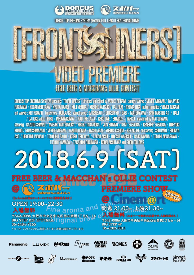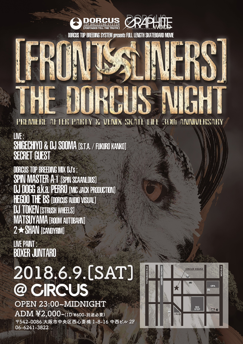 6月9日(土)に大阪・アメ村内のBIG STEP 4FのCinem@rtにて、Dorcusのフルレングス『FRONT LINERS』のプレミア試写会が開催。