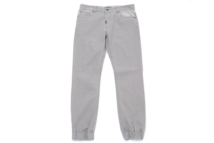 裾をゴムで絞ることでヴォリュームあるシューズとの相性抜群のジョガーパンツ。ポケット部分の切り替えもさりげないアクセント。