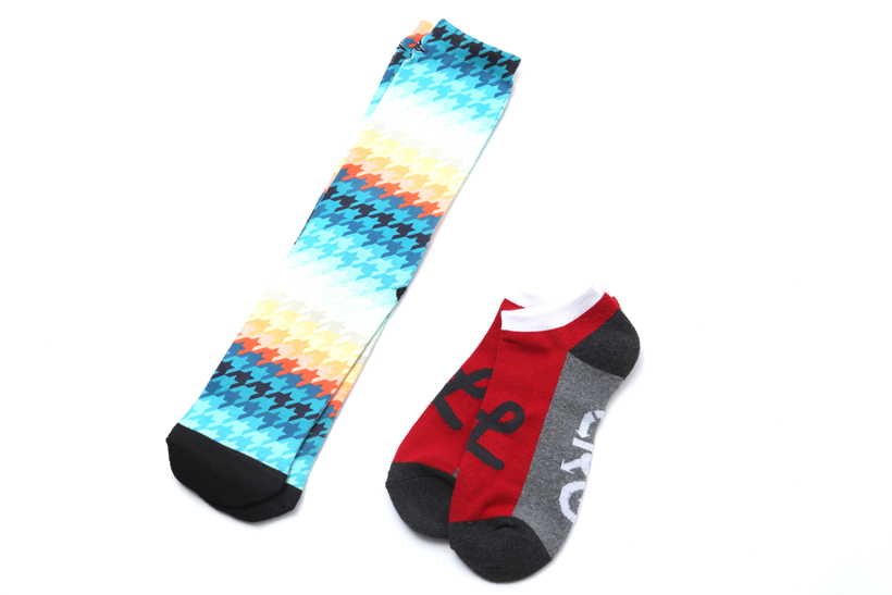 写真左から、ブルー~オレンジへとグラデーションしていく千鳥格子の柄が特徴的。Brighter Side Of Life Crew Sock ¥1,944、