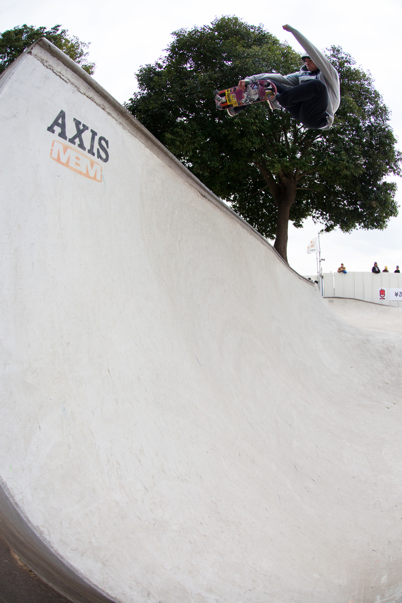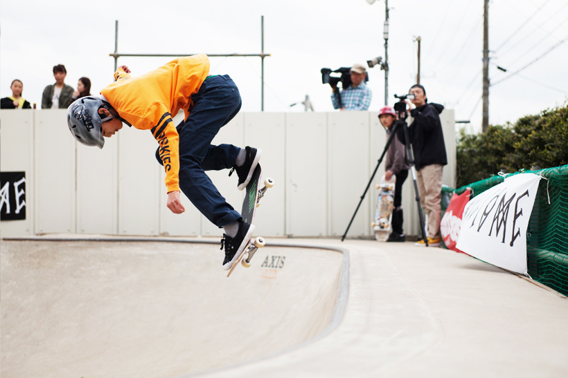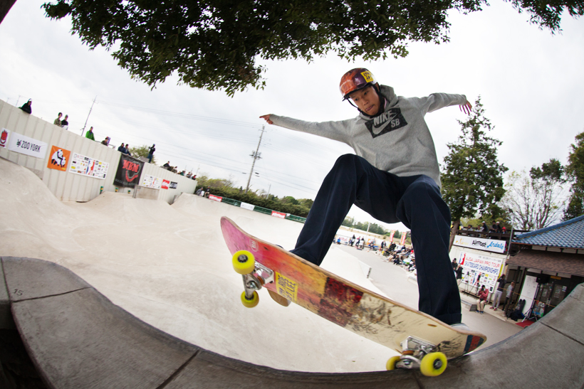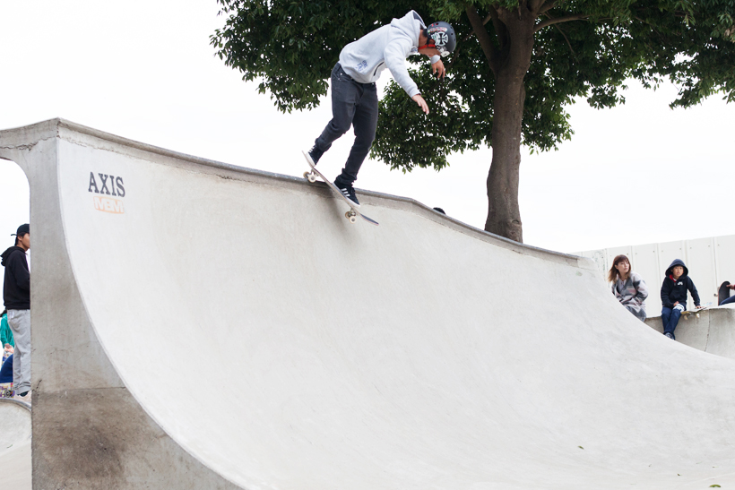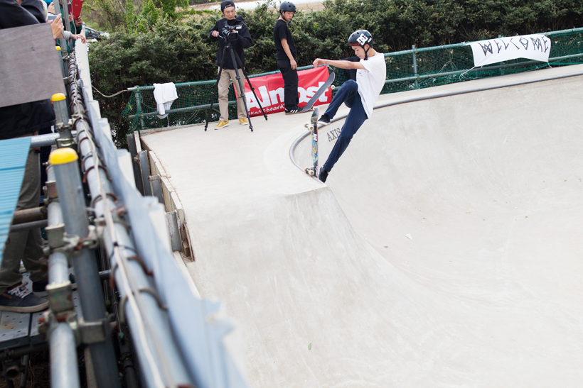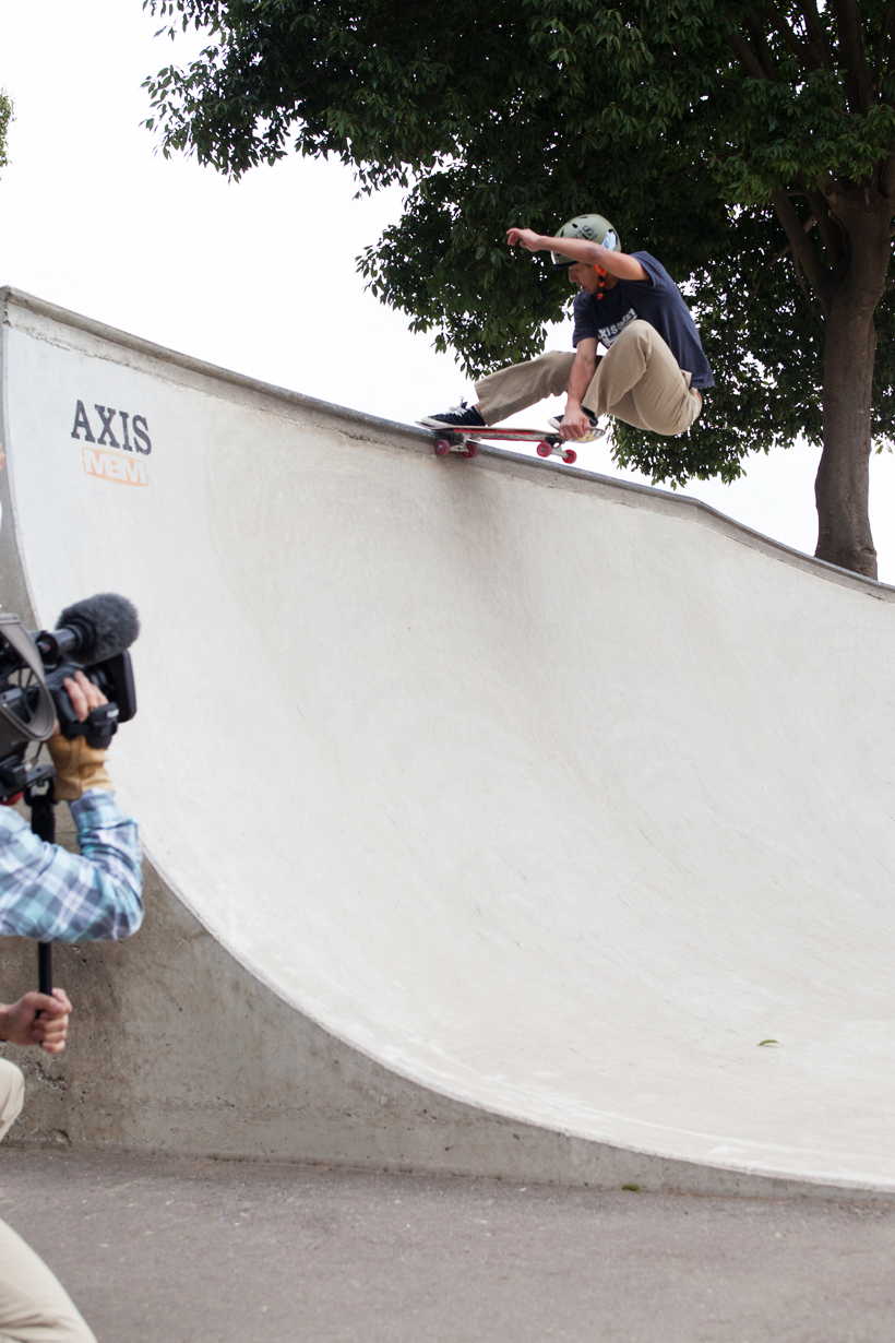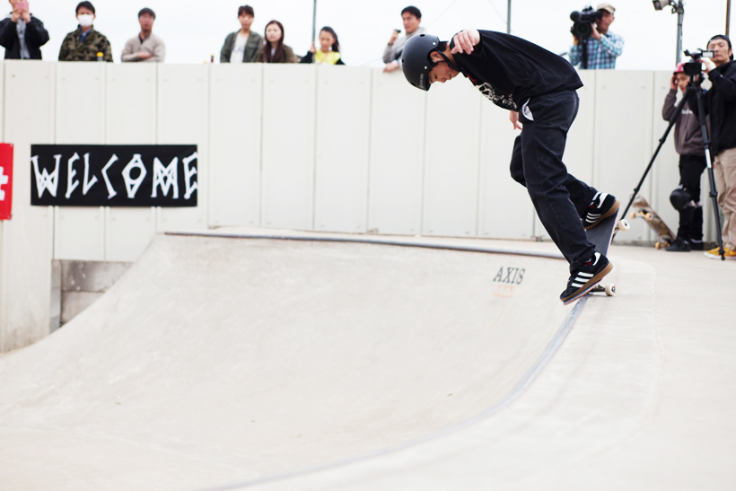 BlindやWelcomeの輸入代理店であるAdvance Marketingの名を冠したビッグイベント、Advance Cupが4月14日(土)にAxisで開催。このコンテストの魅力は何と言っても高額賞金。総額150万円という賞金を目当てに集まったスケーターが2日間に渡り熾烈なバトルをくりひろげるこちらのイベント、今年は天候不順のため1日のみの開催。39名を8つのグループに分けて行われた予選を経て決勝に進出したのは12名。錚々たるメンバーのなかでも、ハイスピードでトランジションを攻略した田中 陽が見事に優勝を飾った。