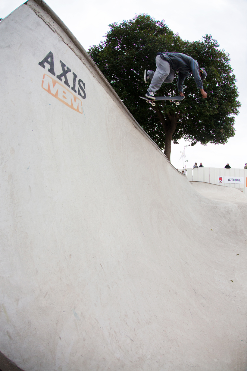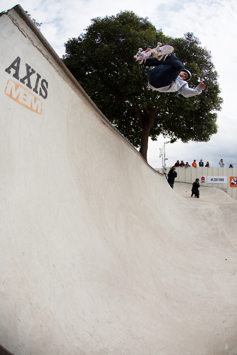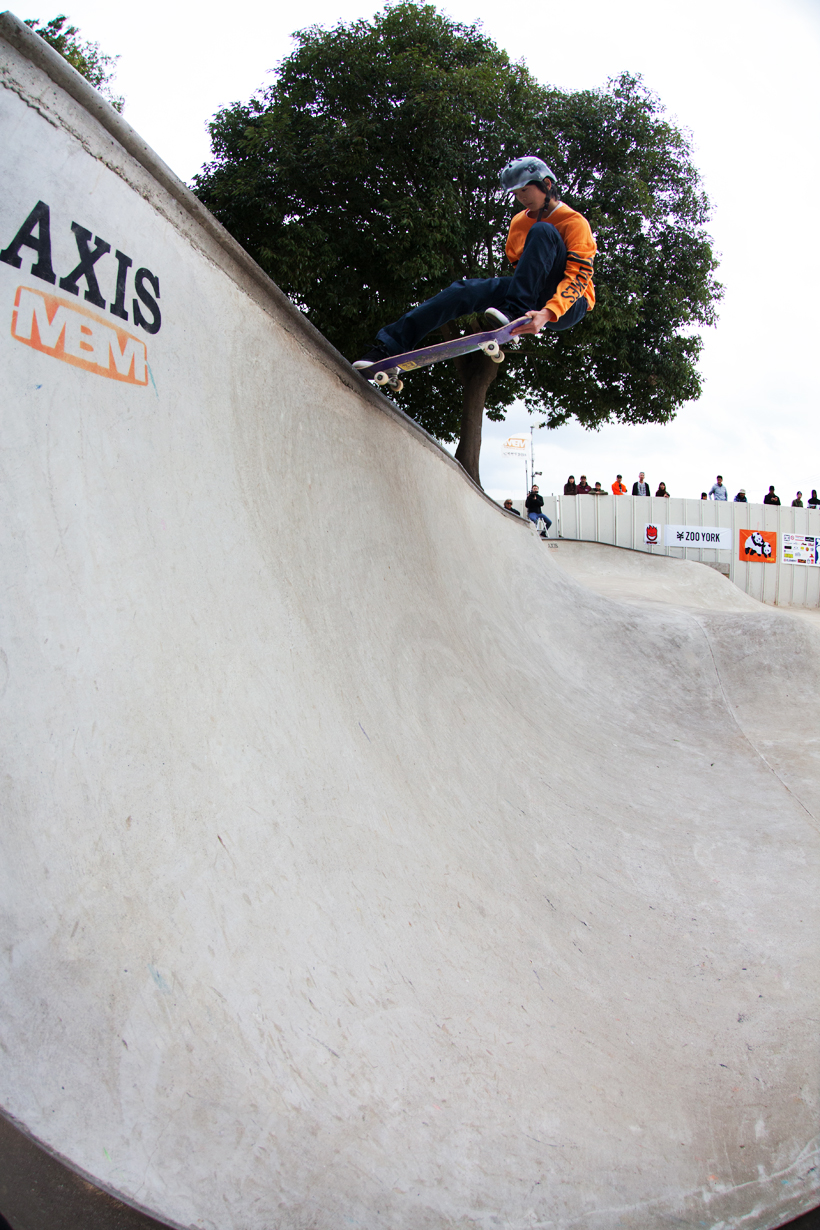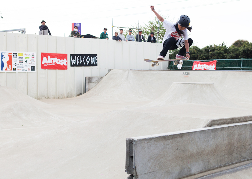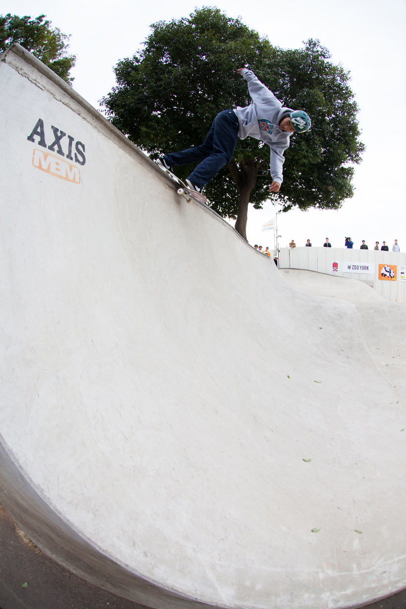 BlindやWelcomeの輸入代理店であるAdvance Marketingの名を冠したビッグイベント、Advance Cupが4月14日(土)にAxisで開催。このコンテストの魅力は何と言っても高額賞金。総額150万円という賞金を目当てに集まったスケーターが2日間に渡り熾烈なバトルをくりひろげるこちらのイベント、今年は天候不順のため1日のみの開催。39名を8つのグループに分けて行われた予選を経て決勝に進出したのは12名。錚々たるメンバーのなかでも、ハイスピードでトランジションを攻略した田中 陽が見事に優勝を飾った。