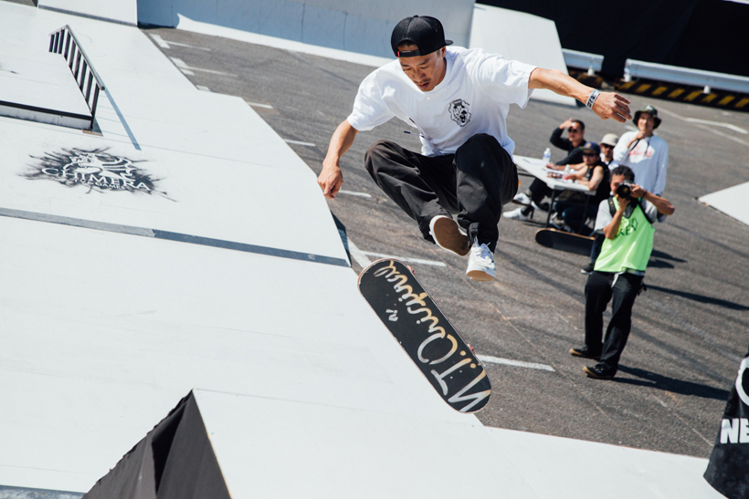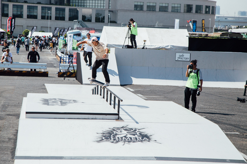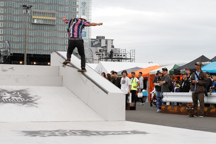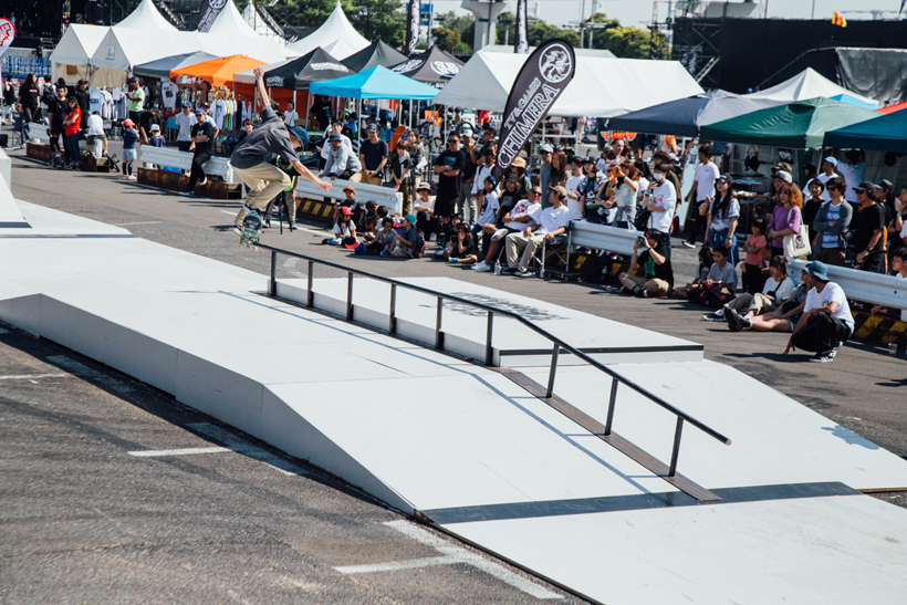 なお両日行われたスケートボード特設エリアでは、初日がロングレールとマニュアルパッドが設置されたバンクtoバンク、2日目はハバレッジとギャップが付いたバンクでコンテストが開催。優勝賞金5万円、そしてSkip Factoryからの協賛金5万円を懸けて8組合計16名のスケーターによるバトルが繰り広げられた。圧倒的なスキルとライディングで両日とも優勝を手にしたのは山城正隆・謝花明徳によるチームレグフィ。スケーターたちの迫力のパフォーマンスは観客を大いに魅了していた。