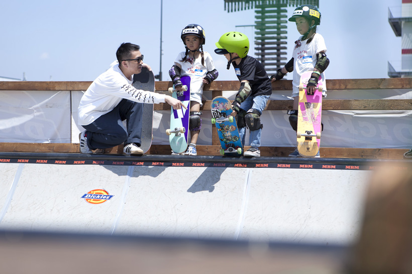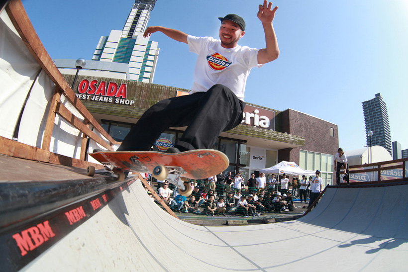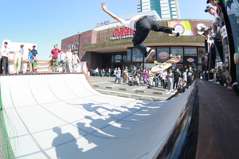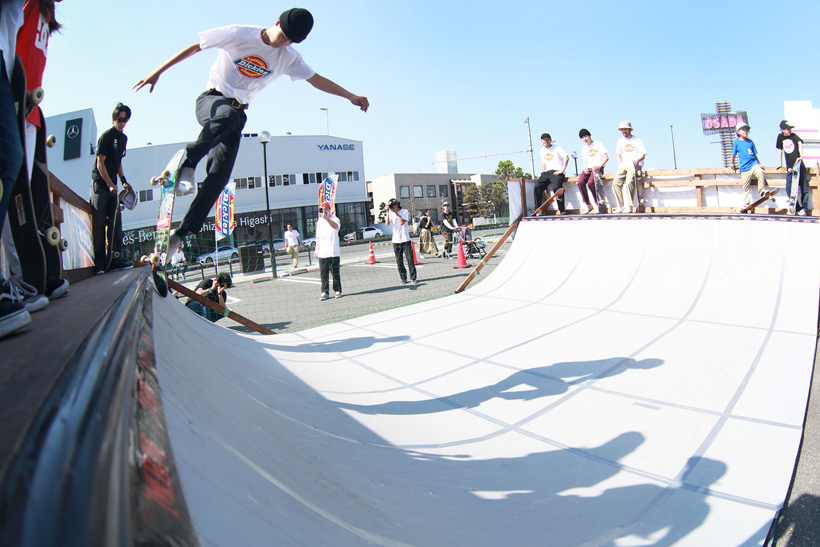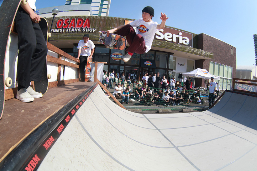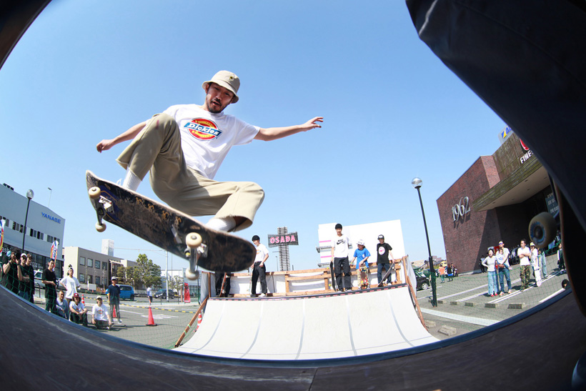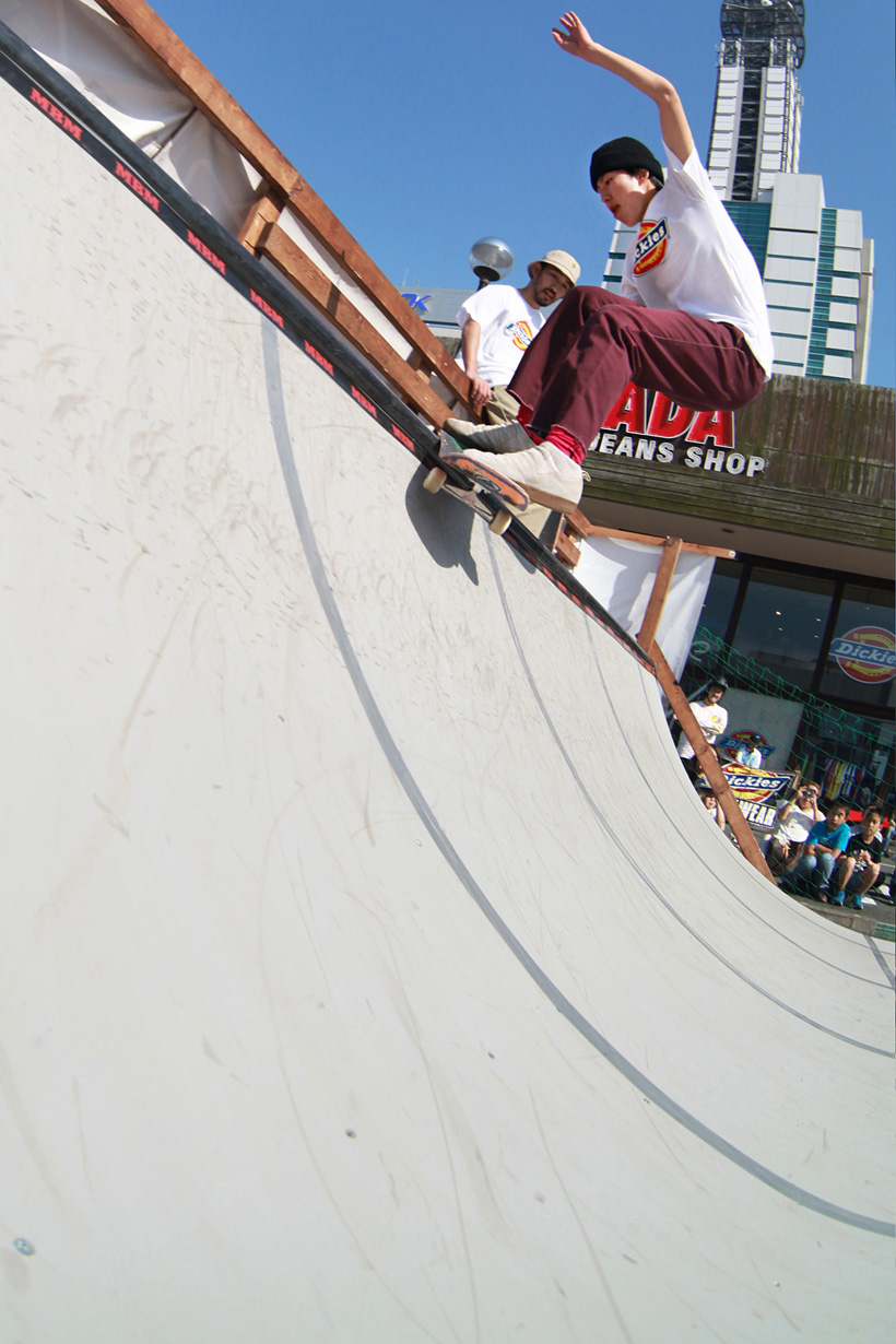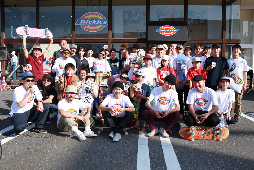 4月21日(土)にDickiesの新店舗が東静岡にオープン。それを記念し、午前中はCheesによる初心者向けスクール、午後にはライダーたちが駆けつけデモとファンセッションを開催。デモでは吉岡賢人がのっけから会場を沸かし、職人肌な竹井勇磨がスピーディにミニランプを駆け巡る。そして最年少の星野大喜がスキルフルに魅せたかと思えば、ベテランの伊藤慎一がビッグトリックで締めくくる“これぞデモ”という流れのまま一般参加によるファンセッションへ。宮島大介のMCとカルロスひろしのDJのもと、Dickiesアイテム引き換えチケットをゲットするために白熱したセッションが繰り広げられた。そしてこのイベントの模様は近日映像で公開予定。