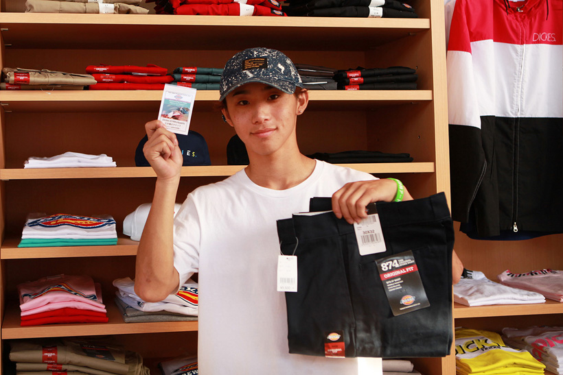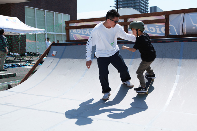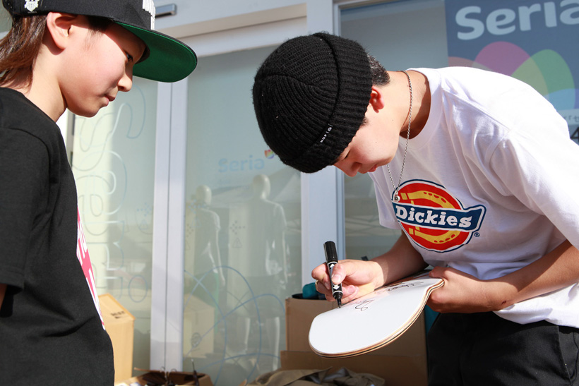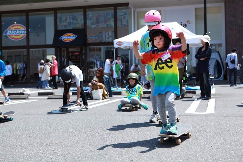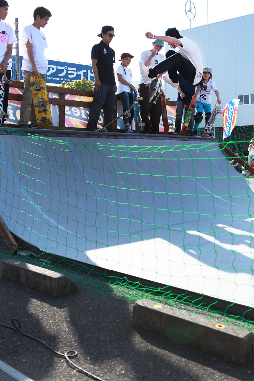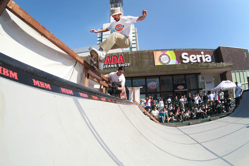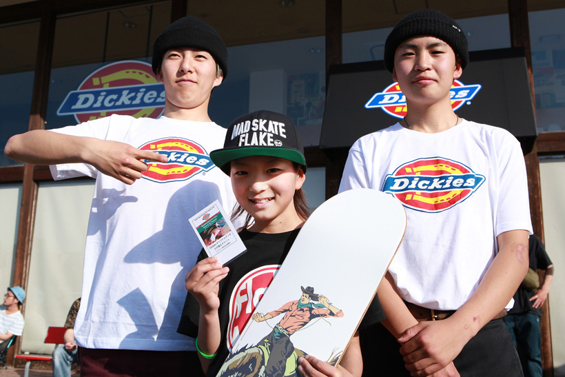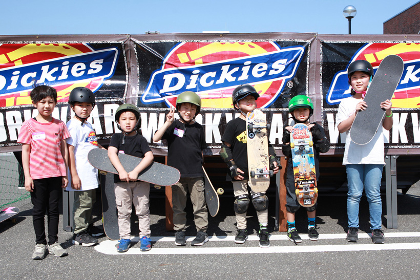 4月21日(土)にDickiesの新店舗が東静岡にオープン。それを記念し、午前中はCheesによる初心者向けスクール、午後にはライダーたちが駆けつけデモとファンセッションを開催。デモでは吉岡賢人がのっけから会場を沸かし、職人肌な竹井勇磨がスピーディにミニランプを駆け巡る。そして最年少の星野大喜がスキルフルに魅せたかと思えば、ベテランの伊藤慎一がビッグトリックで締めくくる“これぞデモ”という流れのまま一般参加によるファンセッションへ。宮島大介のMCとカルロスひろしのDJのもと、Dickiesアイテム引き換えチケットをゲットするために白熱したセッションが繰り広げられた。そしてこのイベントの模様は近日映像で公開予定。