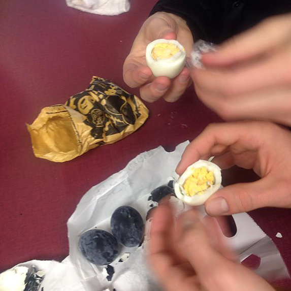雨が強くなってきたけど、大丈夫。だって見たこともないようなおやつがいっぱいあったから。温泉卵はまさにドープって感じで、お餅の方はQuartersnacksのロゴみたいだったからそれだけで大興奮だった。