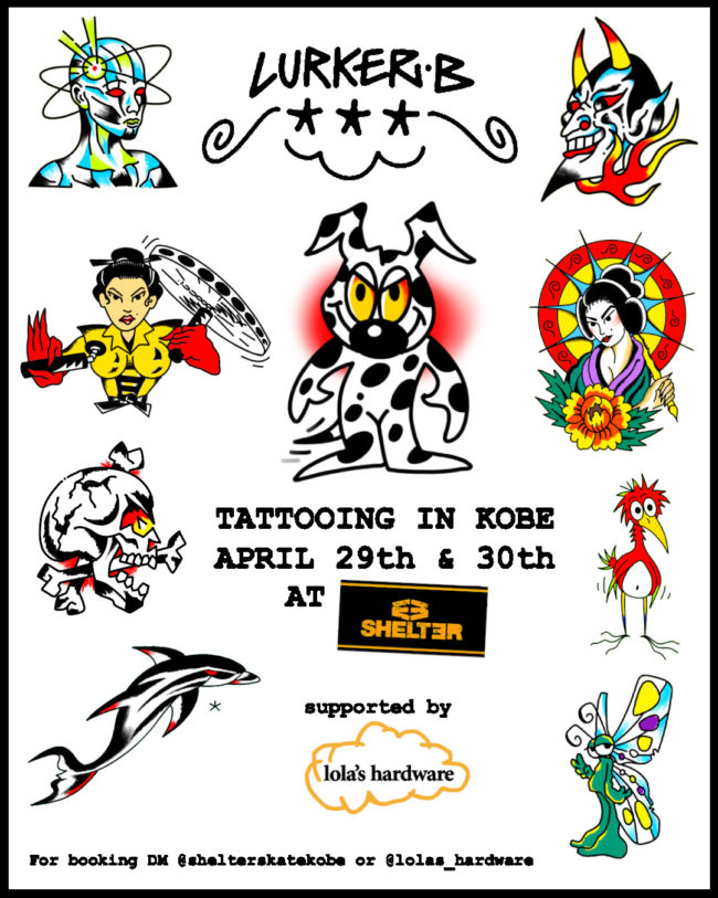 オーストラリアの中でもスケートやグラフィティーなど、ストリートのシーンも根強く独自のカルチャーを生み出す街メルボルンを拠点とするタトゥーアーティスト LURKER .B がSHELTERにてゲストワーク!!
