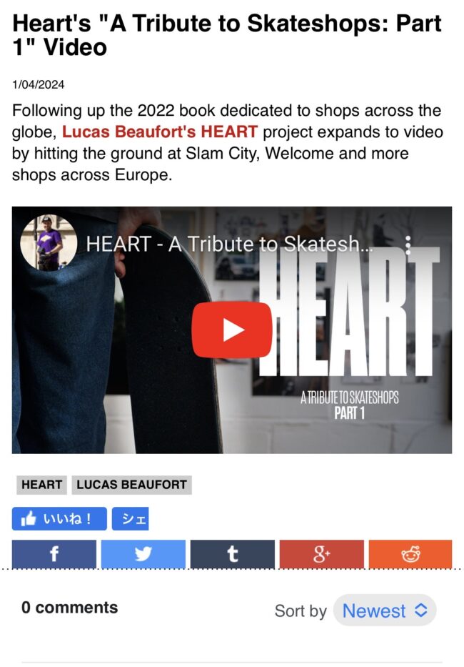──Lucas Beaufort”HEART”の続編ドキュメンタリーHEART - A Tribute to Skateshops - Part 1 公開!!