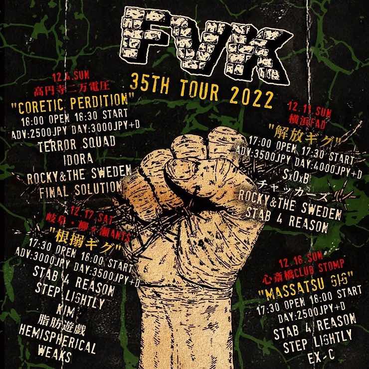 Possessedのディレクター若林氏が所属するハードコアバンドFVKの35周年ツアーが開催。