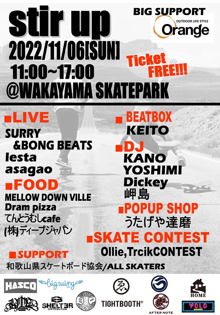 和歌山市初のスケートパークでSTIR UPというイベントが11月6日(日)に開催。