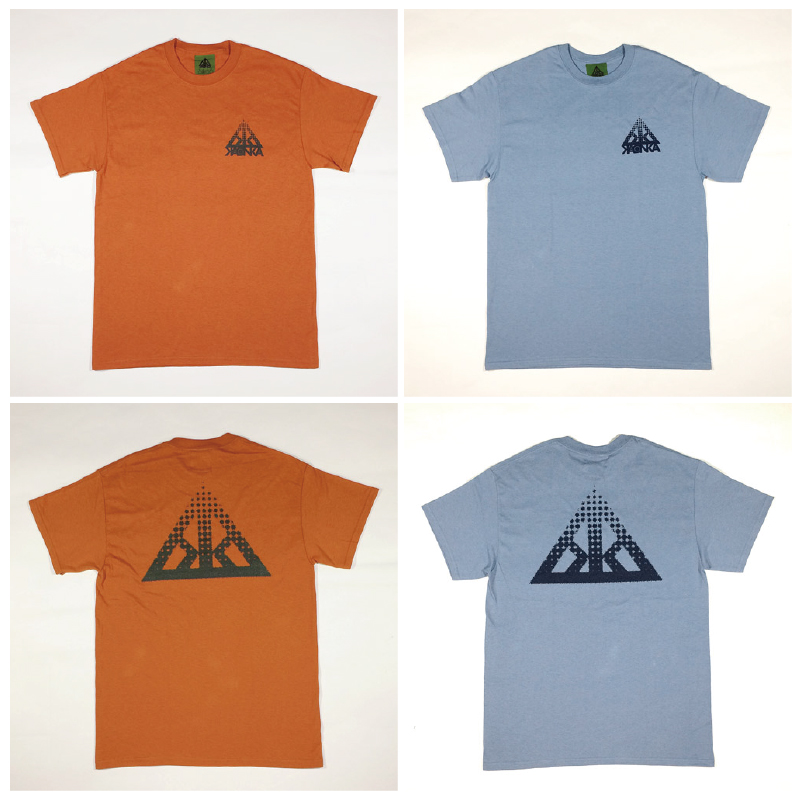 こちらは定番化しつつあるTrigonium logoのDOTバージョンの新色です。今回も程よいくすみ具合のオレンジ色(RUST)にほぼ黒に近い濃いめのグリーン(DEEP.GREEN)、そしてうっすら青みがかった薄いグレー(STONE.BLUE)に黒に近い紺色(NAVY)という絶妙な配色バランスでらしさを表現できたかと思います。