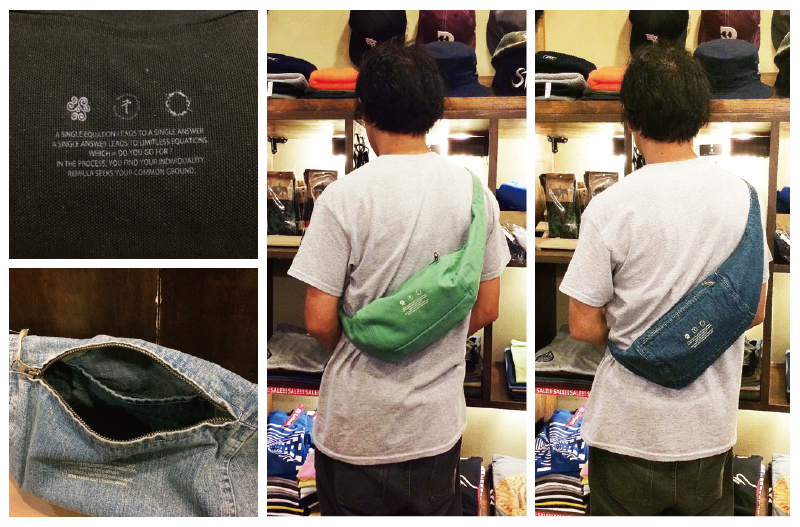 福島はいわき発のアパレルブランドRemilla。他のブランドには考えられないような斬新なアイデアと手間のかかる製法でデザインされていて、左右非対称の独特な形や位置のポケットだったり、基本のアイテム作りを無視したような生地の切り返し方、絶妙なカラーバリエーションなど、独創性が溢れたものばかり。且つ、シンプルでざっくりした雰囲気に仕上げてあるアイテムが多いので色々な服装にも合わせやすいものばかりなのです。どちらかというと表現が落とし込まれた作品というか、そんな感覚に近い洋服でございます。スケーターでも逗子の高山 仁、座間 翔吾、MagentaのSoy Pandayといった、クールな野郎共がサポートされていますよー。