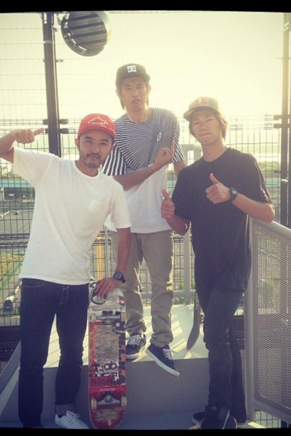 先日お台場のH.L.N.A.skateparkで一緒にセッションしました、最高でした!一つだけ難点を言うならば瀬尻稜がKYなほど上手かったです。笑 中指たててる理由はそういう事!