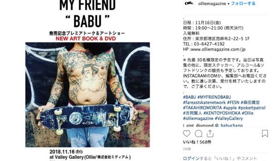 16日(金)はストリートファッションカルチャー誌「OLLIE magazine」さまのお膝元で。 先々月9月28日に発表したFESNの最新作「MY FRIEND BABU」のOLL…