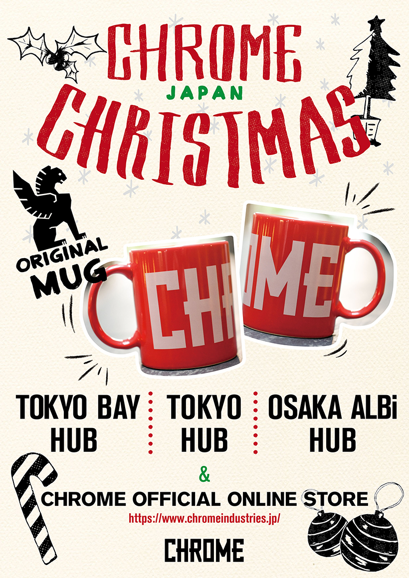CHROMEのTOKYO HUB、TOKYO BAY HUB、OSAKA LABi HUBと公式オンラインストアにて税込み1万5千円以上を購入するとオリジナルマグカップをプレゼント。