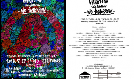 7月27日(金)〜31日(火)にかけて、原宿のHenry HauzにてHirottonのアートショー“No Tomorrow”が開催。 会場ではSABREとのコラボゴーグルが先行予…