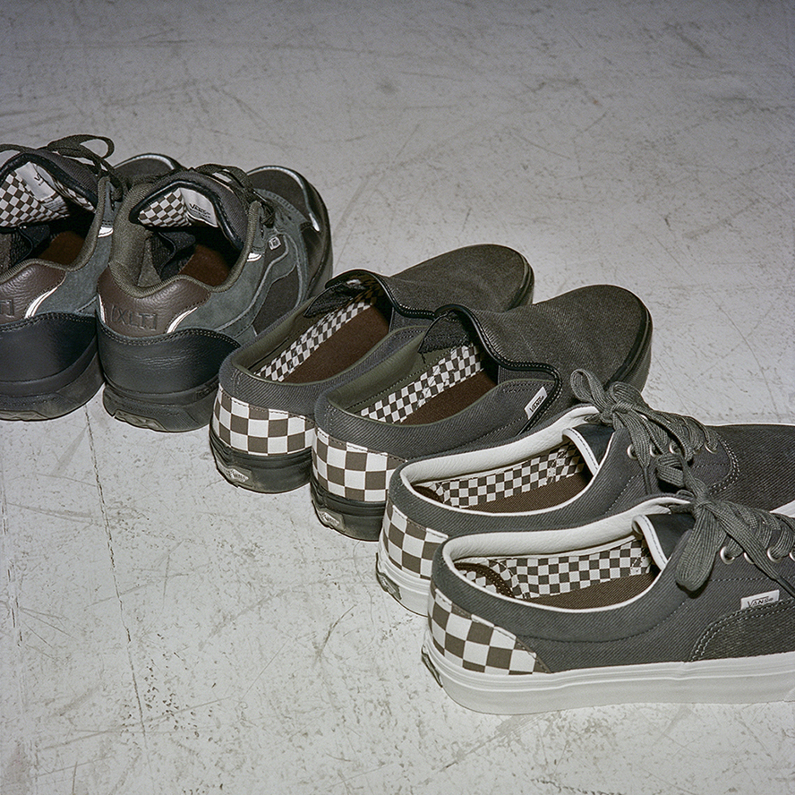 Vainl Archiveのシグネチャーカラーであるブラウンとブラックを組み合わせ、アクセントにVANSのアイコンであるチェッカーボードを採用。