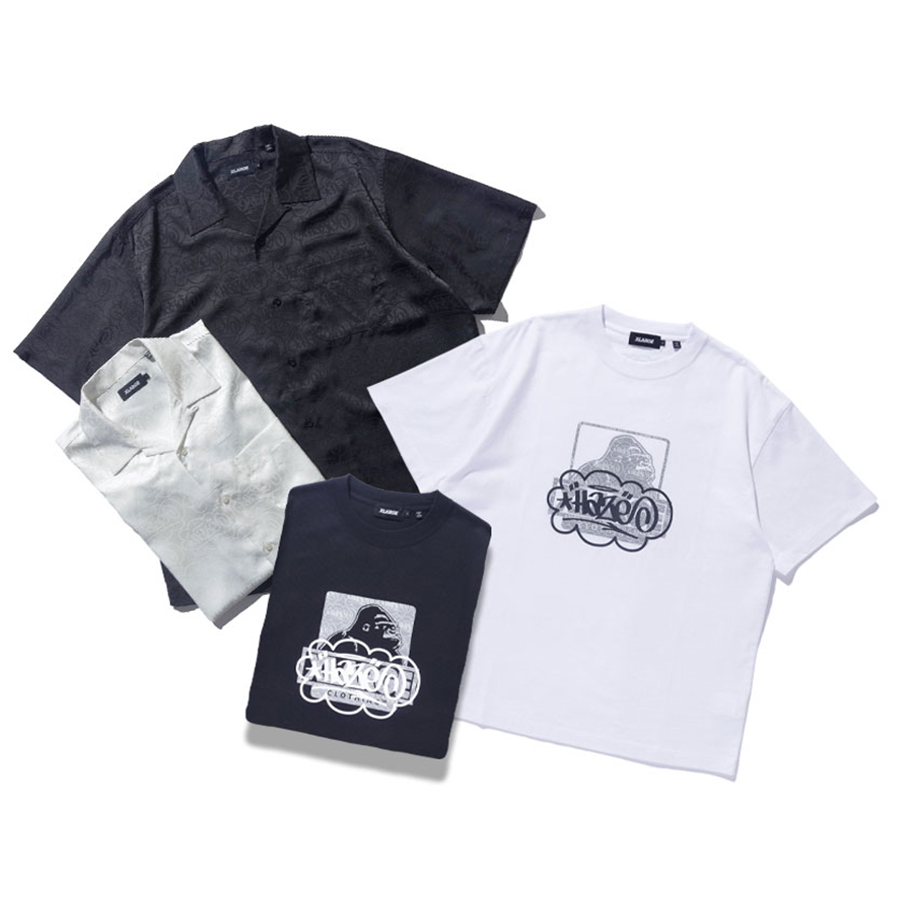 OGゴリラとHAZEロゴををミックスしプリントしたTシャツに加え、HAZEロゴの総柄オープンカラーシャツがラインナップ。