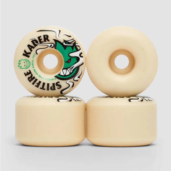 ウィールに関しても中空で軽量化が図られたものや、中心部と外側で硬さの違うコアウィール、最近では高性能ウレタンが開発されたりと、スペックを高めるべくさまざまな取り組みが反映されてきました。僕が最近気になるのはでかいウィールを装着しつつも、どストリートな動きをかます滑りの主。ウィールがでかい、ただそれだけで足元の主張もギラリと強くなるようで、なぜだかそこにセクシーさを感じてなりません。わかりやすいところだと今最も勢いのあるスケーターのひとり、ケイダー・シラ。「でっかいウィール付けてるな〜」とは思っていたけれど、Spitfireからリリースしたての彼のモデルはストリートスケーターには珍しい60mmの極太タイプ。スケートショップのウィールコーナーでは一際目立つ存在感で鎮座しております。