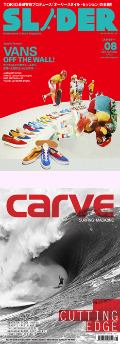 今回のSLIDERはもう読んでいただけたでしょうか? 早くも巷の目黒区大鳥神社界隈ではSLIDERの話題でざわつきはじめて、今号も話題沸騰中? まずはともかく、アメさんもクンさんも松野シャンも大変お疲れ様でした!今回は特に松尾裕幸×Ken GotoによるSF特集やVansジャパニーズ・スケートチームライダーの面々のショートトリップ特集などの新しい見どころがありながら、DCやG-Shockのイベントリポートもアリの「なるほど~ぉ」ってな感じで、パラパラページをめくりメクリ、女子のスカートも思わず、めくりたい! みなさんの夜のお供に秋の夜長のベスト・バイな1冊になることでしょう。