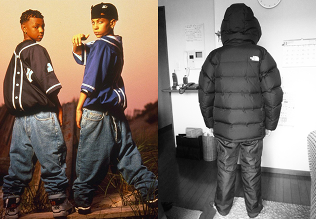 話は遡り今から20年近く前のこと。そう1990年代中盤だ。NBAにDanceにHipHopミュージック。当時中坊だった自分は完全にブラックカルチャーに傾倒していた。まぁ世間的にそういったものが流行し始めた時代でもあり、オレら中坊は完全にそれに乗っかったわけだ。The North Face、Ralph Lauren、Calvin Klein、DKNY、Guess、NauticaにHelly Hansenなどなど。思えばCDジャケットに登場する黒人の格好を真似ては、何の恥ずかしげもなく“悦”にひたっていたものだ。とにかく「サイズは大きい方がえらい!!」みたいな変な風潮があったから、選ぶ服はすべてがXLサイズオーバー。それを中坊がダブダブで着ていたものだから、そりゃ大人から見たら「なにごと?」って感じで、まぁ世間の目は非常に冷たいものだったな……。