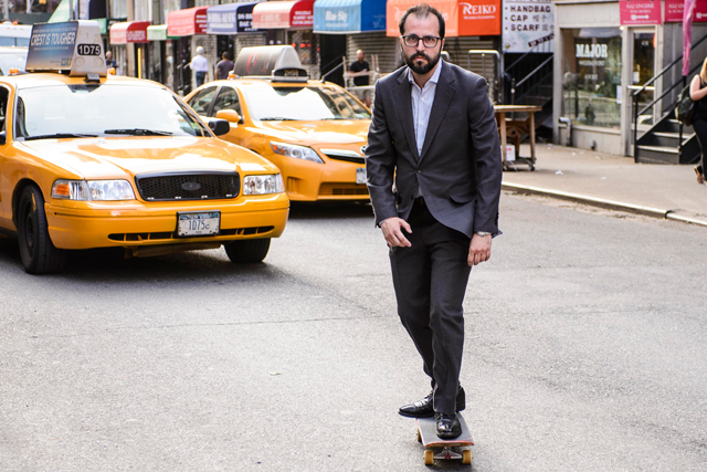 「深夜の車の少ない道路をスケートボードに乗って帰宅するのが最高だよ」と話すのはニュージャージー州在住、41歳のシェフ。彼もまたマンハッタンをスケートボードで移動しながら仕事をするひとりだ。「気分爽快で自由を感じられると同時にワルっぽくもある」。街でスケートボードに乗った彼の姿を見てびっくりし、大口を開ける人もしばしば。しかし、そんなことは彼にとってお構いなし。「世界が違って見えるんだ。生活のペースを落とすことができる。スケートボードに乗っていると周りの環境に感謝できるようになるんだ」