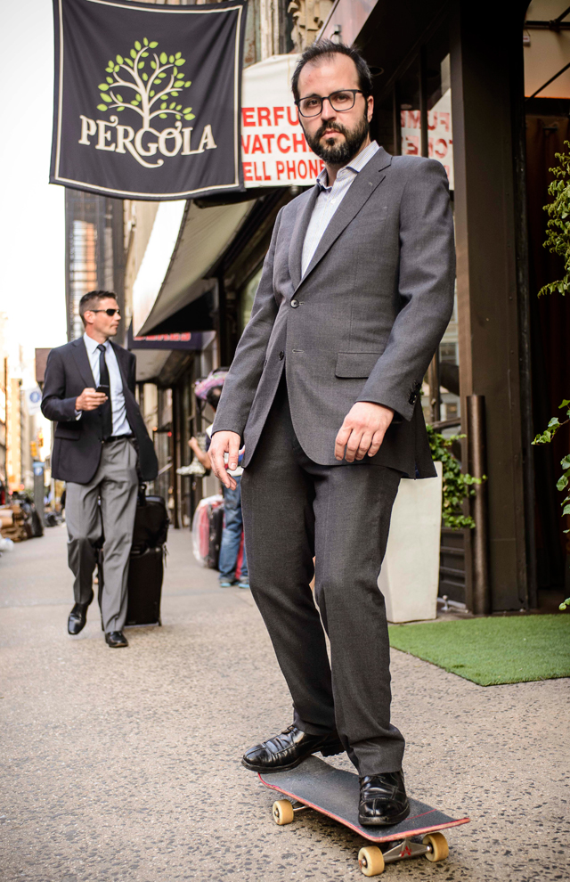 「オレはスーツを身にまとっている……しかも、スケートボードに乗って」。セリエンにとって、スケートボードに乗ることこそ異性の気を引く最適な方法なのだ。「女性は珍しいものが好きなんだよ。スケートボードは最先端だけどやりすぎていない感じがいいのさ」と彼は話す。