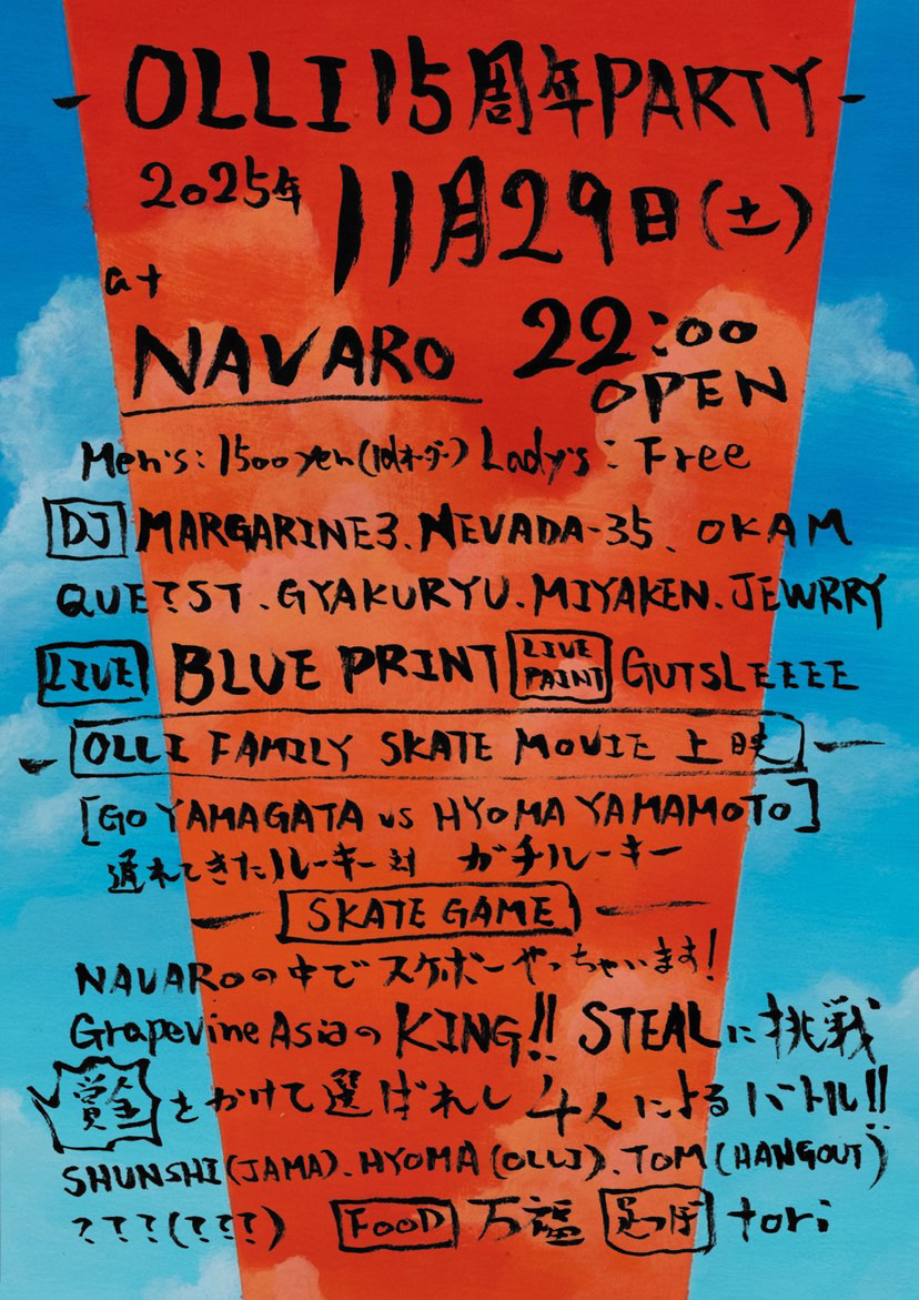 BLOG: KENJI OKUWAKI 今年の10月でOLLI15周年となります。 続けて来てこれていることに…──OLLI15周年 PARTY 11月29日(土)at NAVARO kumamoto 2025.10.05