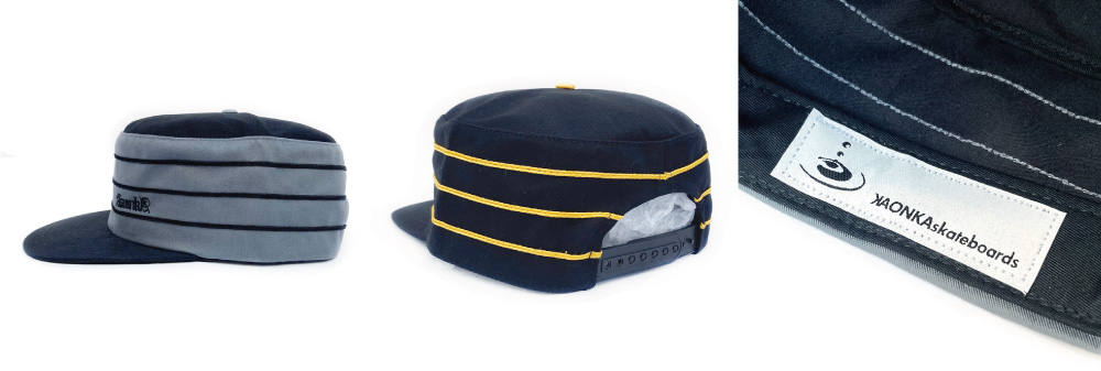 大変レトロな四角いシルエットのクラシックなcapです。最近はあまり見かけない型のcapなので、他の人と被ることは無い素敵な一品かと~。パイピングの感じもクラシックな質感出てますねぇ。