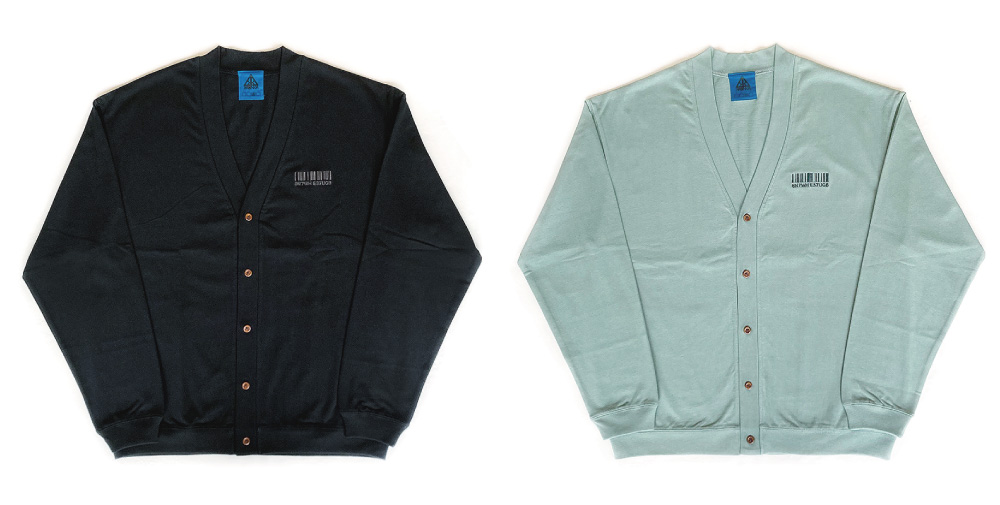 2024 FALL KAONKA barcode cotton cardigan BLACK/DARK.CHARCOAL, SMOKE.SAGE/DARK.SAGE