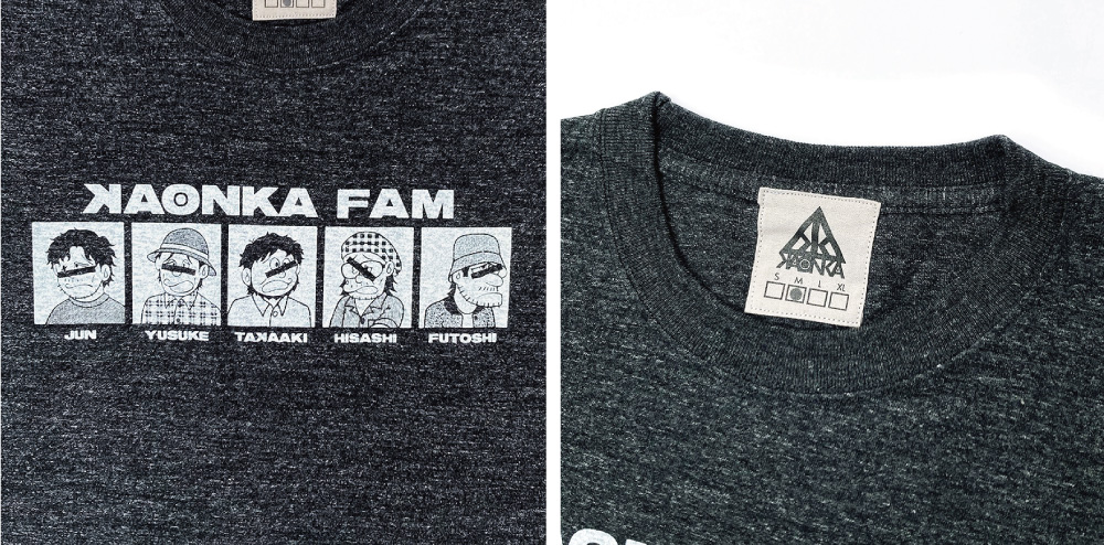 前回も好評でしたどこか懐かしさが漂う気がする、Riderの似顔絵が並ぶfamのs/s T-shirtsの新色です。分かる人には分かるデザインかと、上部にはSL〇P P〇L...、じゃなくてKAONKA FAMの文字が入ります。似顔絵は私自らどことない懐かしさが漂う感じに書き上げてみました(笑)。