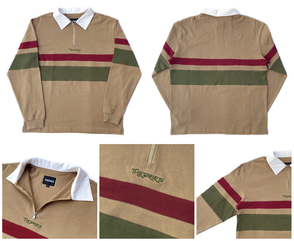 90年代を彷彿させるクラシックな色使いの渋いラグビーシャツです。襟下はボタンではなくハーフジップ仕様となっています。