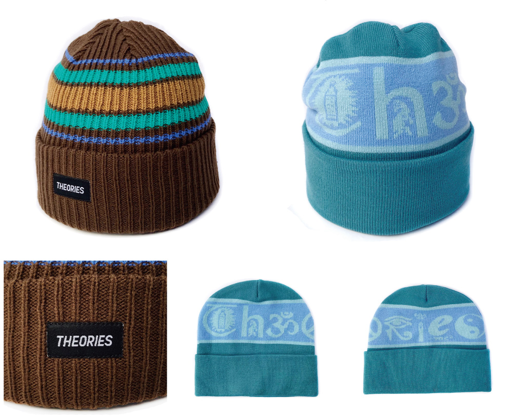 定番のストライプ柄の秋らしい渋い色使いのタイプと、エスニック風なフォントで「Theories」と描かれた柔らかな素材感のタイプの2種類となります。