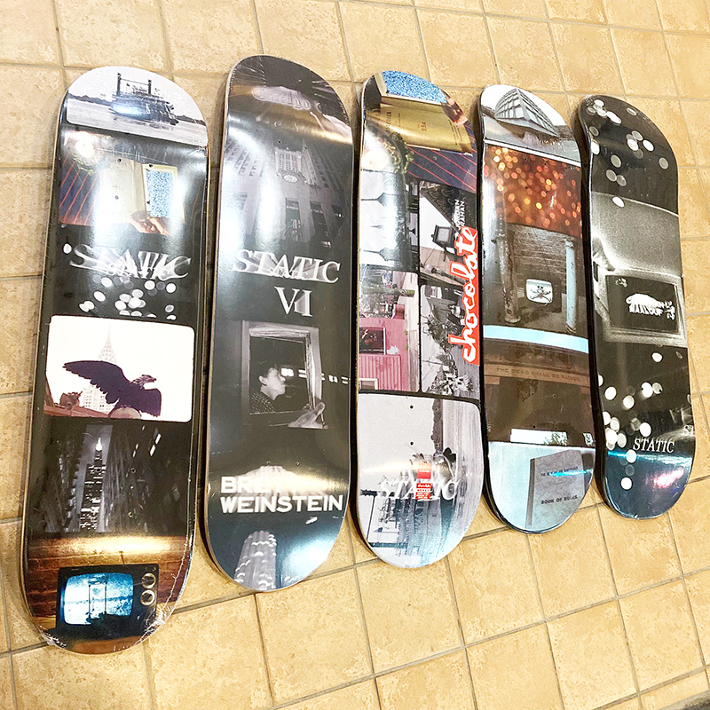 ▲(左から)Static VI LTD deck 16mm 8" 価格:13,200円(税込),studio deck Brett Weinstain static VI 8.125" 価格:15,400円(税込), chocolate deck Jordan Trahan static VI 8.25" 価格:12,100円(税込), WKND deck Trevor Thompson 8.25"CT & Christian Maalouf 8.25" static VI 価格:13,200円(税込)