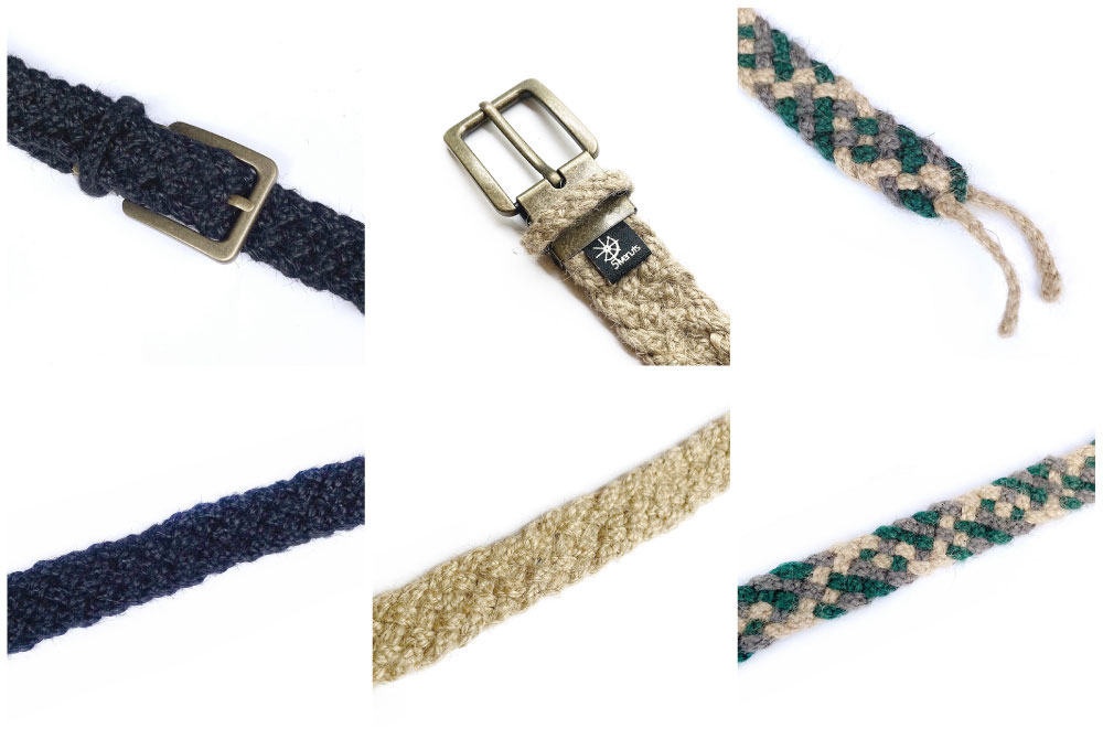 ▲2025 HOLIDAY 5ivenuts handmade collection hemp mesh belt ALL.BLACK, NATURAL, BROWN/GREEN/NATURAL 各価格:8,800円(税込)