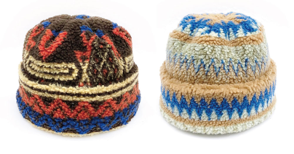 ▲2025 FALL boa fleece cap BROWN/ORANGE(左)、CAMEL・BLUE(右) 価格:6,820円(税込)