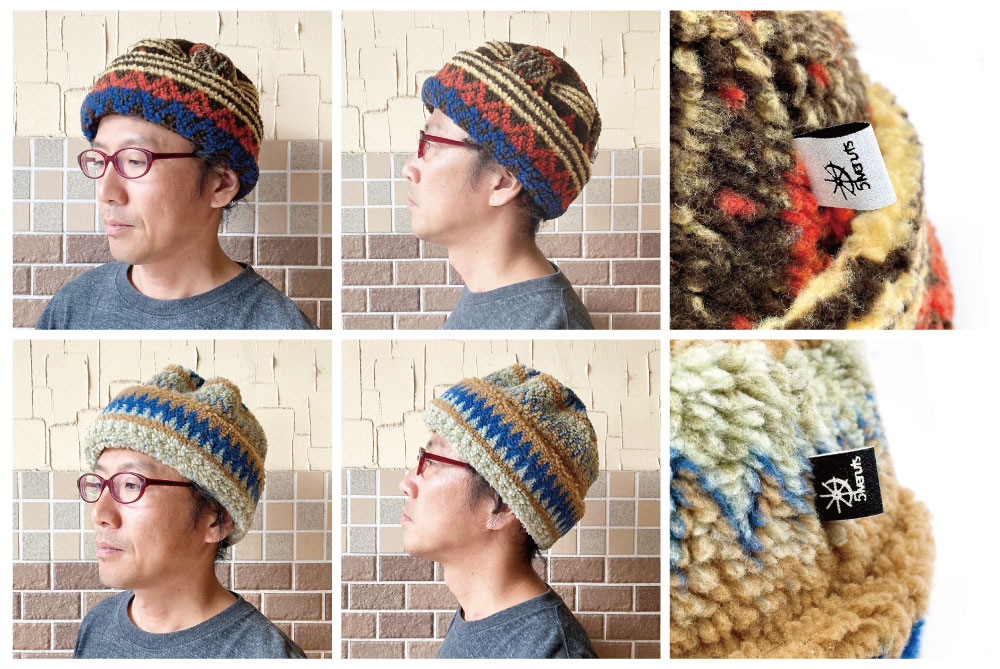 エスニックな柄のボア仕様のフリース生地を使用したニット帽風なcapです、折り返し部分は2段階の作りとなっていて折り返し部分のボリュームが出るような作りで、締め付けも強すぎなくなるように工夫して作りました。handmade colletion用のタブが後ろに付きます。ミシンでの手作りとなりますので、多少粗削りな仕上がりとなりますがご了承くださいませ。こちら今回の生産数ですが各色で限定10点のみとさせて頂きます。