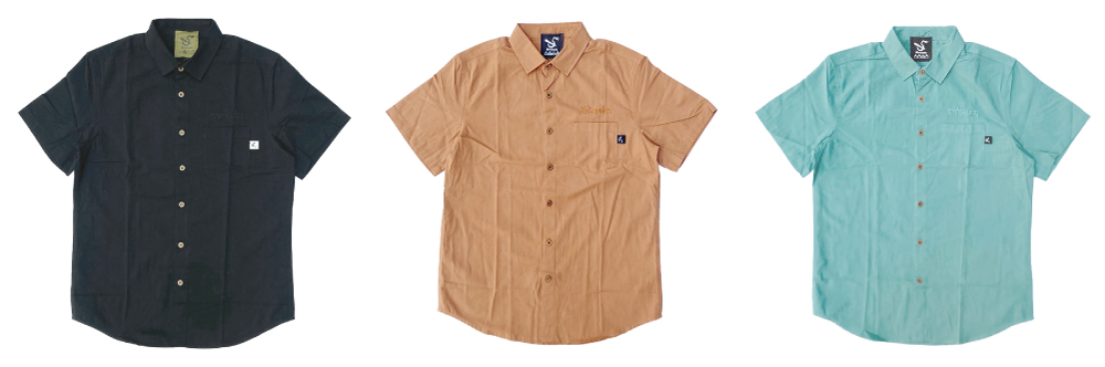 地獄のように暑い日々のストレスを少しでも緩和できるようs/s shirtsをご用意しやがりました。近年T-shirtsよりs/s shirtsの方が涼しく過ごせると感じませんかね~?という訳でサラッとした肌触りのコットン生地を使用したs/s shirtsでやんす~。フロントのポケット上に新しいロゴ sunskrit logoが刺繍で入りやがります。ボタンは木製の渋い仕様でやんす~。ショーツと合わせて着ればバケーション気分に浸れること間違いなしかなーかなー。