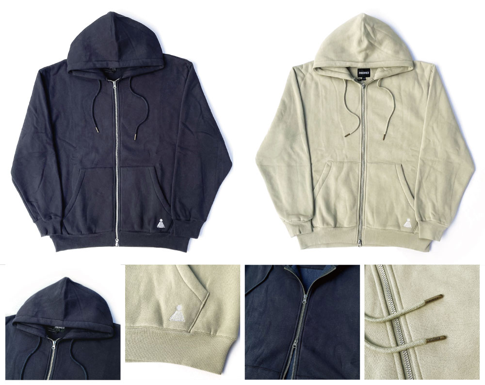 裏起毛のコットンフリース生地を使用したオリジナルシルエットのジップフードになります。暖かな生地の身幅広めのシルエットです。今回よりダブルジップ仕様となりました。