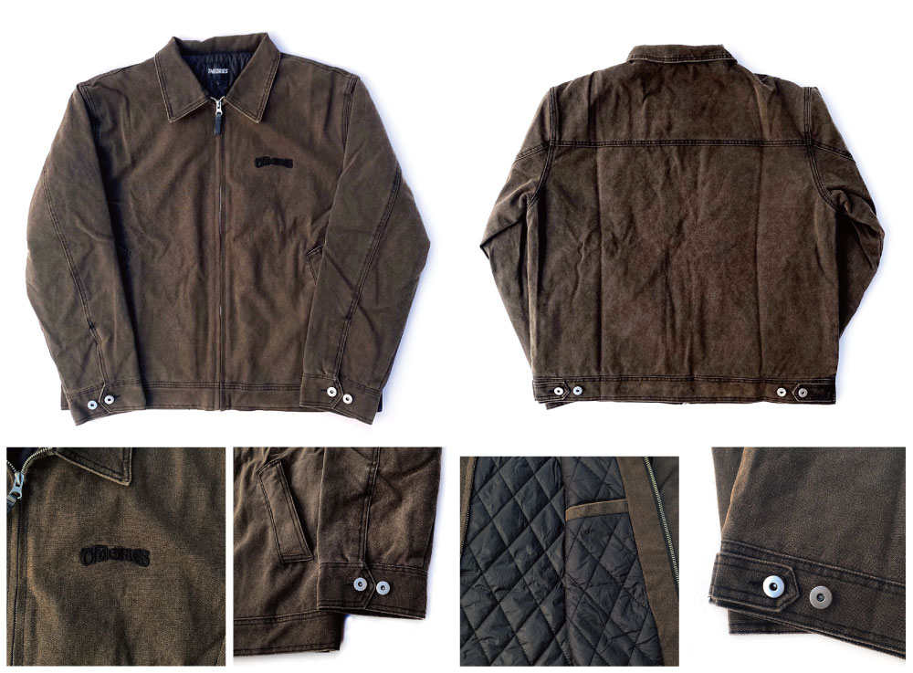 クラシックな定番のワークジャケット仕様で裏地はキルティング仕様、ウォッシュ加工されたコットンキャンバス生地を使用した一着です。