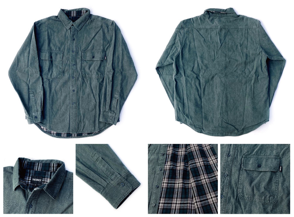 外側をコットン生地、内側を起毛したネル生地を使用したワークウエアなシルエットのシャツです。フロントのポケットにはクラシックなポケットフラップ仕様となります。