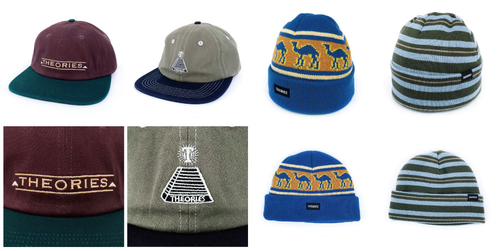 今回は渋い色合わせの2トーンにシンプルで高級感あるロゴの刺繍がフロントに入るpalmer hatと定番のピラミッドのデザインの刺繍がフロントに入るデザインでKHAKI部分はヘリンボーン生地を使用しているscribble hat、そしてざっくりと編み込まれた厚手の編み込みのタイプで、ラクダをモチーフにしたデザインが編み込みで入るsahara beanieと薄手のやわらかいきめの細やかな編み込みのタイプで、アーストーンのシンプルなストライプ柄のnew school beanieです。