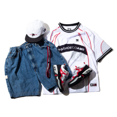 BEN-Gの地元のフットボールクラブのチームカラーをフィーチャーしたカラーがカッコいい。ジョシュ・カリスがDCチームに加入して今年で25周年ということで、彼への敬意を感じられる90sスタイルのコレクション。レッドのパテントレザーがイカしているTRUTH OGは、でかいショーツに合わせて履きたい!
