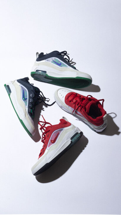 NIKE SB初期のシューズには、実験的なシューズが沢山あったけど、なかなかスケーターに馴染まなかった印象だ(個人的には大好きでよく履いていたけど)。今回のNIKE SB AIR MAX ISHODは、きっとスケーターにも受け入れられるんじゃないかな。技術や仕組みは革新的だけど、全体のデザインは、そこまで未来的ではない。デザインのベースは、90年代に発売されたNIKE AIR FLAIRというシューズ。90年代の未来を見据えた特徴的なデザインは、クラシックとフューチャーが良いバランスでミックスされていて、現代のファッションに馴染みやすいと思う。