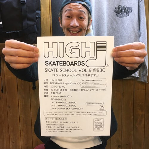 今夜はHIGHSOX SKATE SCHOOL VOL.9です!