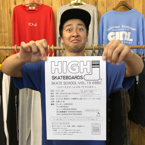 ──今夜はHIGHSOX SKATE SCHOOL VOL.19です!