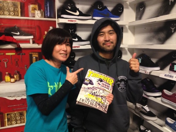 店の中にミニランプが設置されており、試写会前にローカルのスケーター達と滑って盛り上がった。