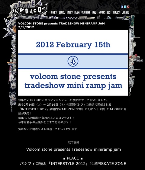 今年も"Interstyle 2012"でVolcom主催のミニランプコンテストが2月15日に開催されます。