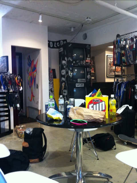 宮下パークの向かいにあるオープンテラスで朝食をとったり、109前で観光したり、念願のVolcomの事務所にも行けました。